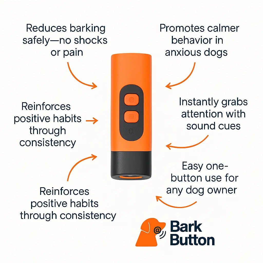 Unlike complicated training systems or harmful shock devices, Bark Button™ keeps it simple: a single press delivers fast, safe, and consistent results. It’s your all-in-one solution for a quieter, calmer, happier dog.